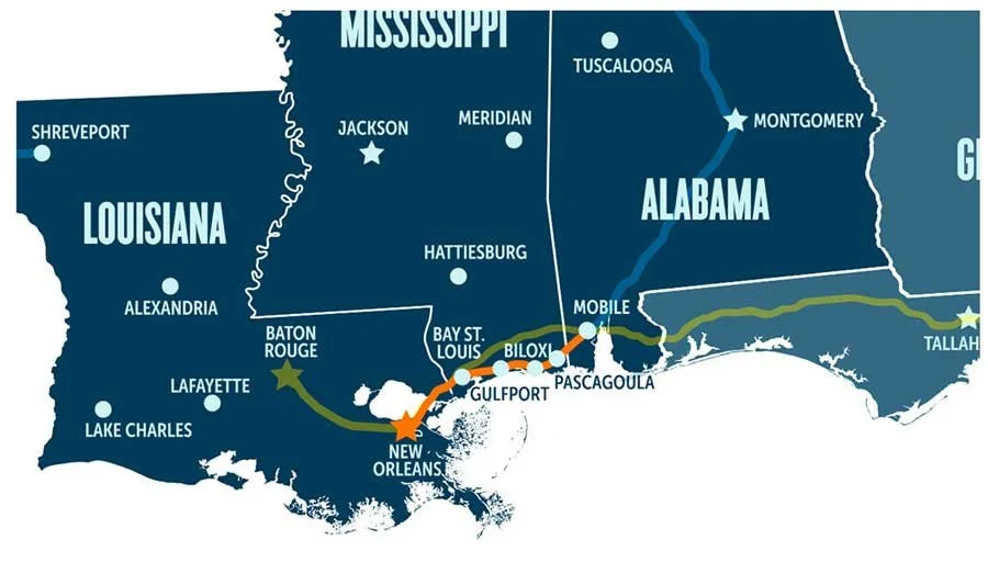 The Amtrak New Orleans to Mobile route will also stop in Bay St. Louis, Gulfport (which is now the second largest city in Mississippi), Biloxi and Pascagoula.